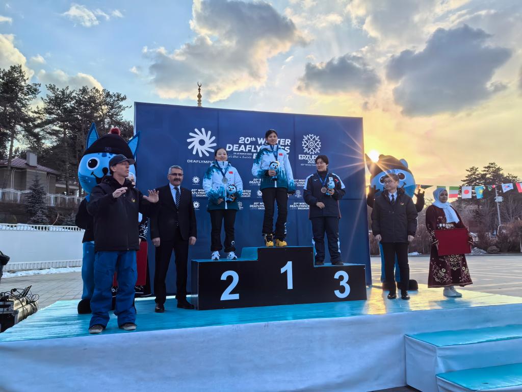 男子獎牌頒獎現(xiàn)場。 據(jù)介紹,此次平行大回轉比賽旗門角度小、間隔遠、坡度陡,比賽時間長、滑雪次數(shù)多,對各隊伍運動員來說都是不小的挑戰(zhàn)。摘得金牌的趙月月和楊彬在本次賽事中分別進行了8次和10次滑行,遠超日常訓練強度,在為時6個小時的比賽中挑戰(zhàn)了身體極限。 教練員尹連魁表示,在2019年意大利聽障冬奧會上,趙月月帶傷出戰(zhàn),為中國隊在該項目上取得一枚銅牌。經(jīng)過刻苦訓練,隊伍本次收獲兩枚金牌、四枚獎牌,作為教練員也非常激動,這是中國聽障單板滑雪的突破。