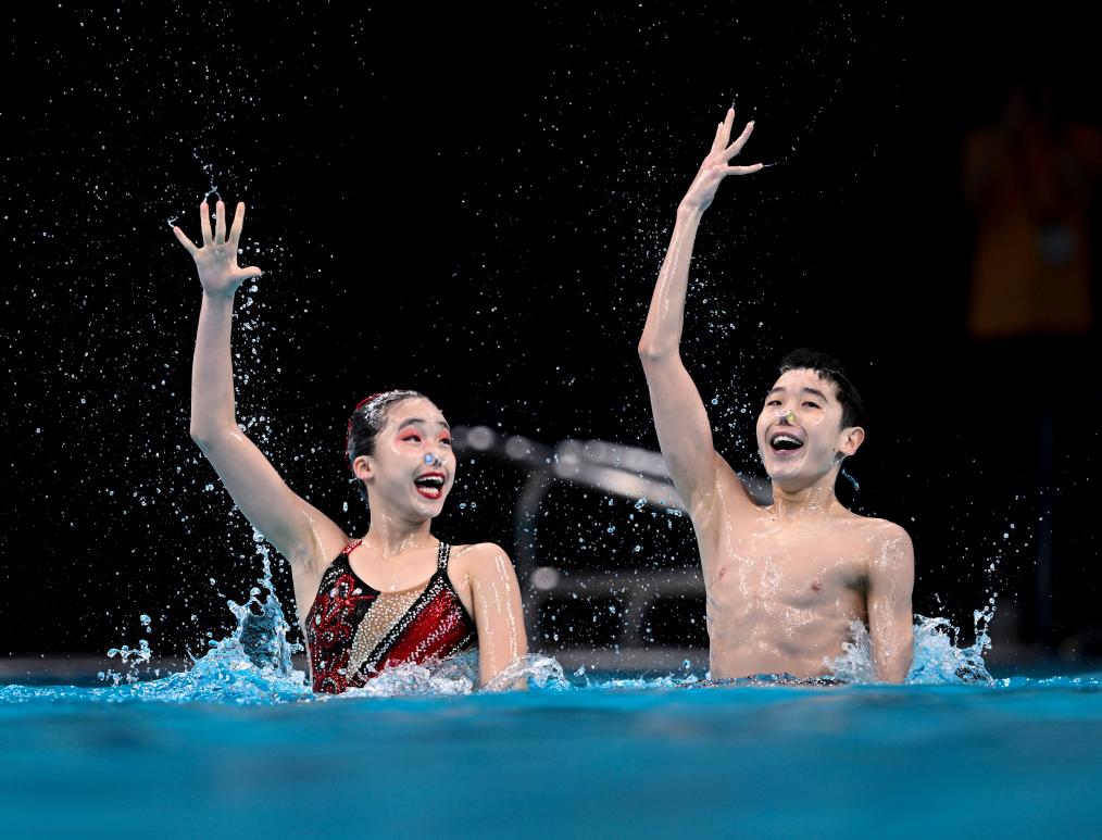 意大利隊、哈薩克斯坦隊和西班牙隊分獲混合自由自選項目前三名。中國隊顧嘉虞/郭牧兮位列第四?!敖裉彀l(fā)揮出了訓(xùn)練水平,我覺得自己需要增強力量,跟其他男選手還有差距,要繼續(xù)努力?!惫临庹f。