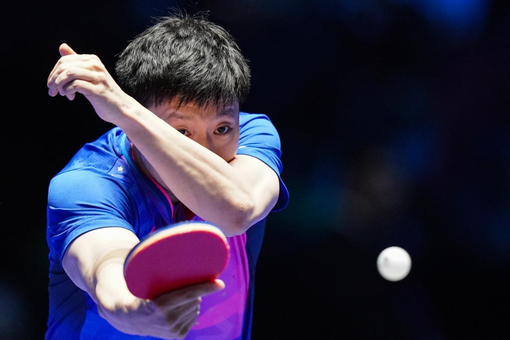 4月21日,馬龍在比賽中回球。新華社記者 王申 攝