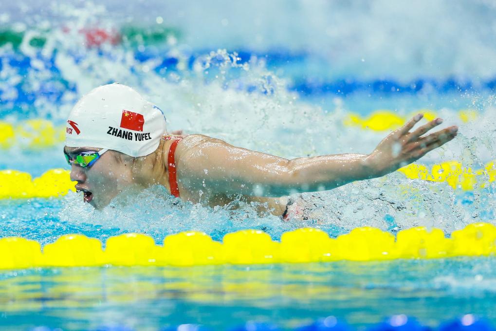 在女子200米蝶泳決賽的爭(zhēng)奪中,張雨霏一路領(lǐng)先以2分06秒40奪冠,陳露穎、龔真琦分獲銀牌和銅牌。