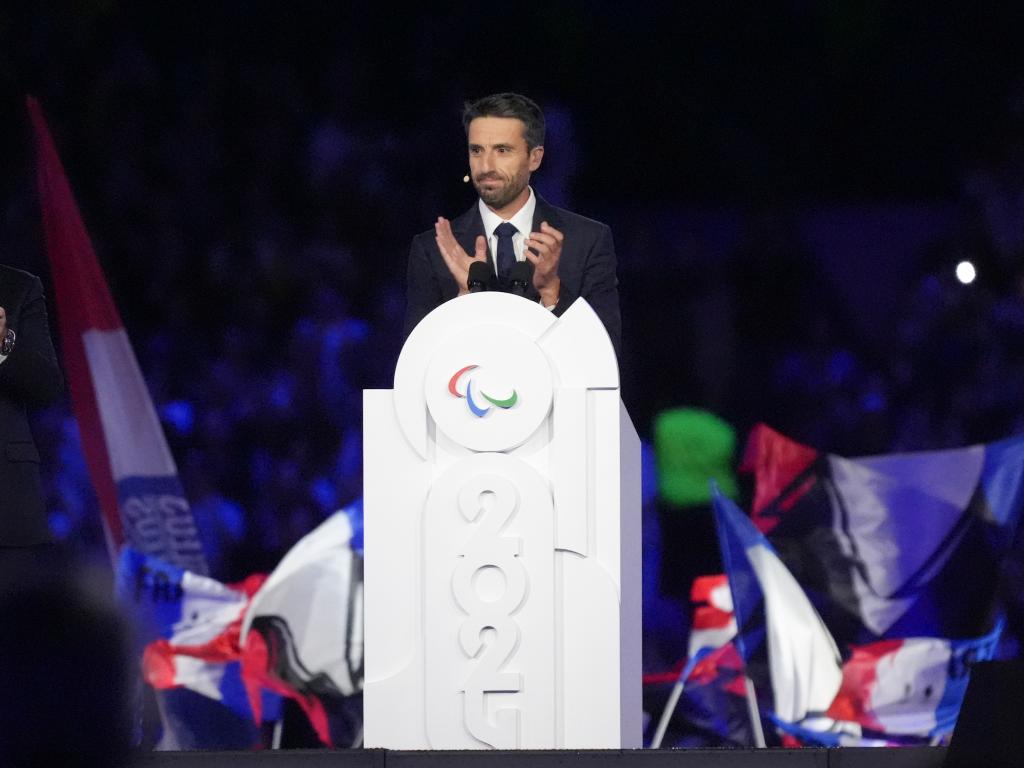 9月8日,巴黎奧組委主席托尼·埃斯坦蓋在閉幕式上致辭。新華社記者 才揚 攝 “殘奧會運動員們,在這最偉大的舞臺上,你們是表演的明星。你們書寫了一個我們共同的世界。”帕森斯說,“從大皇宮到凡爾賽宮,從法蘭西體育場到拉德芳斯體育館,你們的表現(xiàn)點亮了這座城市,光芒四射。你們帶著希望來到這里,作為運動英雄和榜樣離開,為一個更美好、更包容的未來樹立了榜樣?!?/p> 六位新當選的國際殘奧委會運動員委員會委員亮相,中國殘疾人舉重運動員譚玉嬌也在其中。隨后,2000名場地內(nèi)的志愿者代表所有志愿者接受全場歡呼和致謝。 八名舞者,包括幾位殘疾舞者,在舞臺中央展現(xiàn)了高難度舞技,隨后殘奧會會旗被移交到下一屆舉辦城市洛杉磯市長卡倫·巴斯手中。