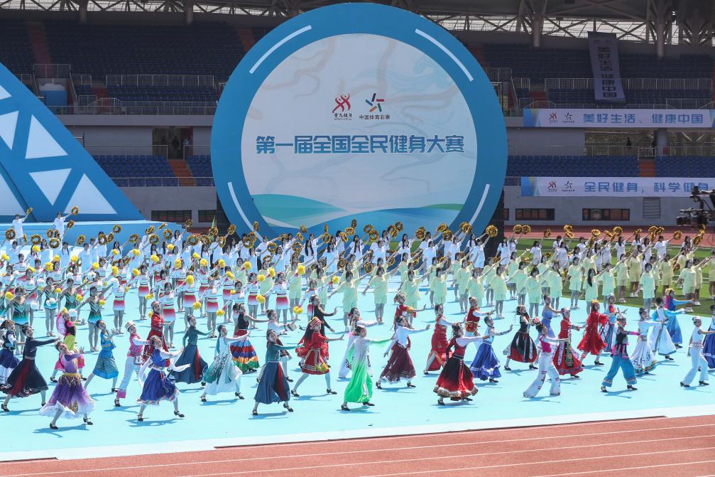 5月5日,中國隊成員在頒獎儀式上慶祝奪冠。新華社記者 江宏景 攝 4、第一屆全國全民健身大賽舉行 5月20日,第一屆全國全民健身大賽在沈陽開幕。賽事分七個賽區(qū)進行,開展賽事活動6000余個,涵蓋運動項目近100項,直接參與人數(shù)超過200萬人。