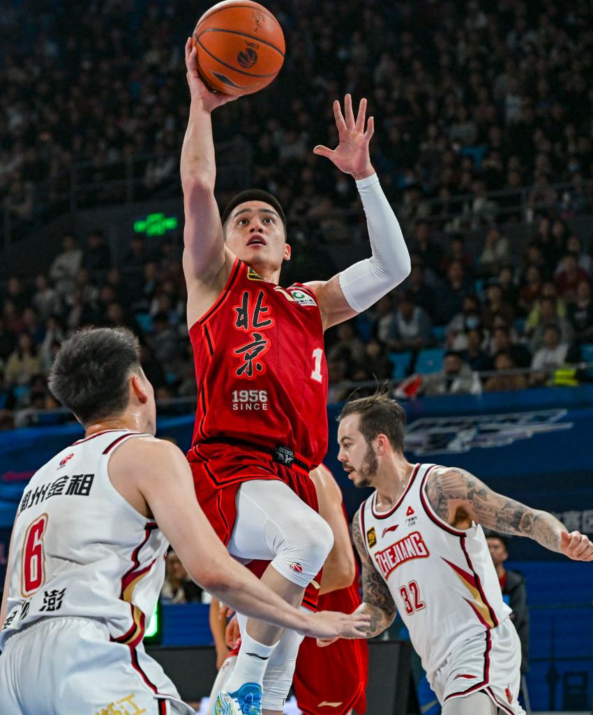 3月31日,北京隊球員曾凡博(上)在比賽中投籃。新華社記者 孫凡越 攝 被寄予厚望的22歲新星曾凡博,經(jīng)歷一段時間的起伏后,在聯(lián)賽第三階段比賽中強勢崛起。在3月5日北京隊對陣山東隊的比賽中,他拿下33分創(chuàng)個人CBA職業(yè)生涯單場得分新高。青島隊“二年級生” 楊瀚森本賽季場均得到16.6分,場均10.5個籃板和2.6次蓋帽均位列本土球員榜首。 同曦隊史首進季后賽,21歲的林葳功不可沒,他本賽季場均能得到21分,有5場比賽得分超過30分,是常規(guī)賽本土得分王,而這只是他征戰(zhàn)CBA的第三個賽季。在上海隊豪取16連勝的過程中,李弘權(quán)、李添榮逐漸走入人們的視野,成為了球隊不可或缺的“雙子星”,場均加起來能貢獻30.3分,兩人都入選了常規(guī)賽MVP候選名單。 廣廈隊“勞?!焙鹎镅永m(xù)高效表現(xiàn),在攻防兩端均有上佳表現(xiàn),他在常規(guī)賽出場44次,場均19.1分和8.3個籃板的數(shù)據(jù)均位列本土球員第二。常規(guī)賽MVP的候選名單中,胡金秋個人累計貢獻值(6.947)高居第一,是頭號熱門。孫銘徽在第36輪遭遇骨折,常規(guī)賽報銷,但他仍以場均9.5次助攻在本土球員中名列第一,防守方面他更是聯(lián)賽“搶斷王”,場均有2.6次搶斷。