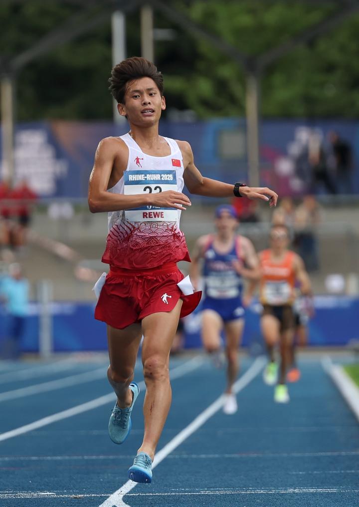 7月23日,王文杰沖過(guò)終點(diǎn)線。新華社記者 胡星宇 攝