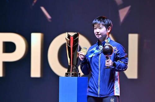 “很感謝為我加油的隊(duì)友們,最終拿到冠軍非常開心?!眾Z冠瞬間,王楚欽手指教練和隊(duì)友們,共同慶祝。“前面幾局張本(智和)發(fā)揮得更好,給自己帶來很大的困難,但自己沒有受到比分落后的影響,逐漸找到比賽感覺,發(fā)揮出更好的水平,用自己的得分手段贏下比賽?!?/p>