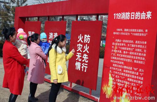 2月25日,原平市民正在119消防文化主題公園觀看、了解、學習消防安全與火災(zāi)防范知識。為進一步推進社會化消防宣傳工作,原平市為廣大市民打造了一個寓教于樂、主題鮮明的消防宣傳教育平臺。整個公園具有鮮明的消防主題特色,集觀賞性、教育性為一體,可使廣大市民在休閑娛樂中,了解如何防范、應(yīng)對火災(zāi)發(fā)生,以及如何進行火場逃生等基本常識。(趙春曉 攝)