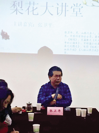 農家出身的張衛(wèi)平來自代縣基層,現(xiàn)為中國作家協(xié)會會員,著有長篇小說《給我一支槍》、《絕唱》,長篇散文《走馬雁門》,短篇小說集《童年的小搖車》、中短篇小說集《野魂》,電影《給我一支槍》、《浴血雁門關》、《血戰(zhàn)午城》、《人祖山保衛(wèi)戰(zhàn)》,電視連續(xù)劇《大宗師》。在這次“梨花大講堂”文學講座上,張衛(wèi)平從文學的載體切入,縱論了從口頭文學到紙質文學、影視文學、網(wǎng)絡文學的演變發(fā)展;結合自己的創(chuàng)作感悟,站在技術層面,從語言、人物、情感、結構、思想五個高度闡述了對文學的判斷;站在藝術的境界,分情感、歷史、精神三大板塊,講解了作品提升的高度。該市偵探小說作家狄保壽感到張衛(wèi)平的講解切中了文學創(chuàng)作的要害,讓大家明白了如何提高文學創(chuàng)作水平的道理。青年文學愛好者李詠梅表示要按照張衛(wèi)平老師的講授,不斷努力,寫出更好的文學作品。該市文聯(lián)主席鄭建芳告訴記者:“梨花大講堂要形成常態(tài)化,為提升全市文學創(chuàng)作隊伍整體素質發(fā)力?!保ㄌA紅)