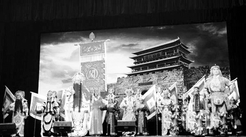 二是新編《寧武關(guān)》把“忠孝節(jié)義”始終作為主旋律,這樣定位也是準(zhǔn)確的。周府是忠孝節(jié)義的牌符和縮影,周母是忠孝節(jié)義的精神后盾,周遇吉是忠孝節(jié)義的強(qiáng)勁化身。從歷史上的《火燒寧武關(guān)》到現(xiàn)如今的新編《寧武關(guān)》,這一主旋律前后一脈相承,貫穿始終,這是歷史使然,劇情使然,也是我們可貴的中華民族精神使然。周府以至周遇吉其人受人們尊敬的地方也在這里,周家滿門(mén)忠烈的事跡被人們傳頌也就在情理之中。