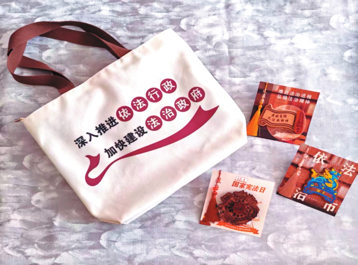 行走的法治與非遺宣傳:帆布包上的流動風(fēng)景線。除木雕冰箱貼外,帆布袋成為“普法+非遺”系列文創(chuàng)產(chǎn)品的一大亮點(diǎn)。雙面印有宣傳圖案,正面“依法行政”“法治政府”主題鮮明,背面則是忻州非遺與景點(diǎn)交織圖,靜樂剪紙、撓羊賽、北路梆子等非遺元素與忻州古城、五臺山等景點(diǎn)相互輝映,構(gòu)成生動文化圖卷,讓群眾沉浸于法治“文化味”與非遺“煙火氣”。