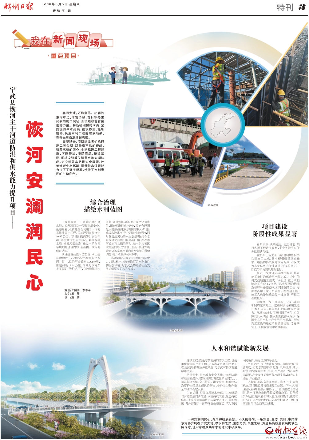 一河安瀾潤民心,兩岸錦繡展新顏。不久的將來,一條安全、生態(tài)、美麗、惠民的恢河將奔騰在寧武大地,以水利之興、生態(tài)之美、民生之福,為全縣高質(zhì)量發(fā)展提供堅實保障,讓沿岸群眾共享水利建設(shè)豐碩成果。