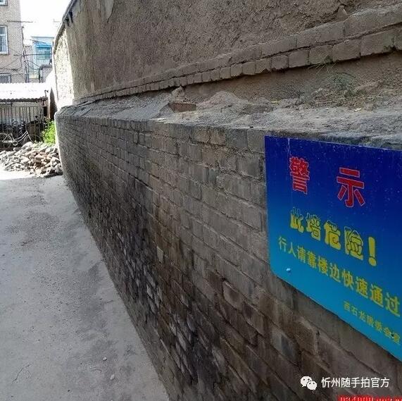 正值雨季來臨,位于繁峙縣舊法院小區(qū)西墻年久失修,多處開裂傾斜,墻體下部已倒塌,整扇土墻隨時都有崩塌的危險。危墻下二米寬的通道是宿舍住戶必經(jīng)之路。人們每天走到此處都會擔(dān)驚受怕,危墻嚴(yán)重危及二十多家住戶人員的生命安全。院墻隸屬于墻西住戶,墻體傾斜于舊法院宿舍這面,多次找主人商談,一直無人理睬。繁峙縣西石龍居委會只是貼了一個小提示,就沒有了下文,試問這樣的事情誰來管,等到出了大事,該找誰?希望有關(guān)部門和領(lǐng)導(dǎo)能夠引起重視早做處理,防患于未然!