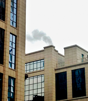城區(qū)云中路瑞新裝飾城對(duì)面,有兩個(gè)煙囪冒煙,污染環(huán)境。城區(qū)七一路臨街一酒店樓頂有煙不斷冒出,而且味道嗆人。希望商戶或住戶配合治理,共同營造碧水藍(lán)天的良好環(huán)境。12月9日網(wǎng)友攝