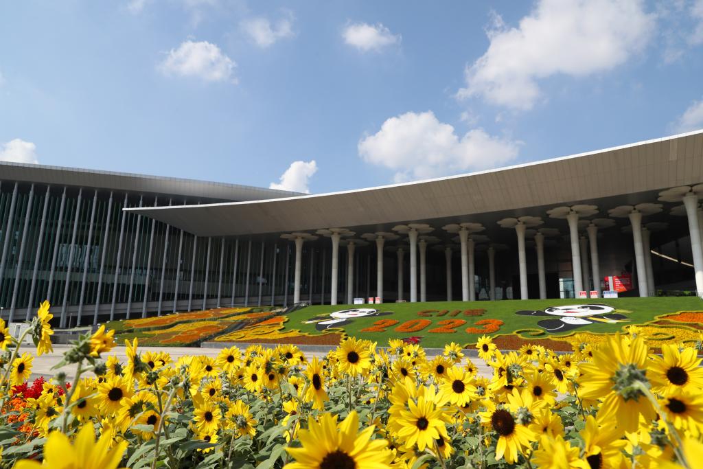 這是10月24日拍攝的國家會(huì)展中心(上海)南廣場(chǎng)。位于上海青浦的國家會(huì)展中心(上海)場(chǎng)館外部進(jìn)博會(huì)主題裝飾工程目前已進(jìn)入收尾階段,包括南廣場(chǎng)在內(nèi)的四個(gè)出入口都已裝飾一新,迎接即將開幕的第六屆中國國際進(jìn)口博覽會(huì)。新華社記者 方喆 攝