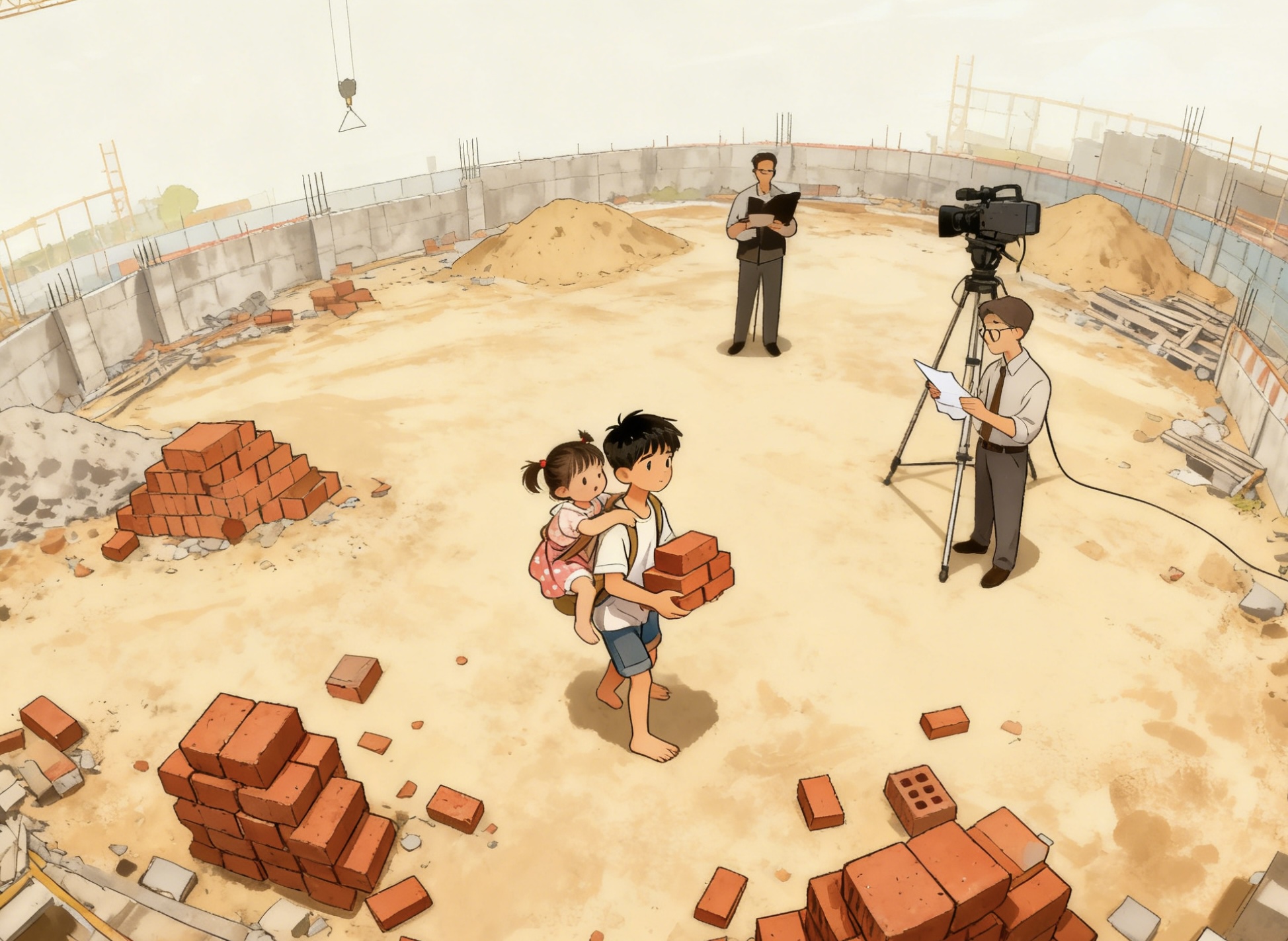 要戳破這場“愛心騙局”,首先得認清擺拍式賣慘的真實嘴臉。這些“苦情戲”的典型癥結,在于缺少“時間、地點、人物”核心三要素,關鍵是劇情嚴重違背邏輯常識。就像視頻中赤足干活的男孩,稍有常識者都清楚,這完全違反工地基本安全規(guī)范。這些“演員”對面往往架著專業(yè)的拍攝設備,力求捕捉到每一個“慘”的瞬間,生怕錯過任何一個催淚點。