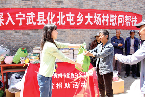本報(bào)訊 在“ 七一”建黨節(jié)到來之際,忻州郵政分公司黨委選派部分黨員志愿者、職工代表奔赴寧武縣化北屯鄉(xiāng)大場村開展獻(xiàn)愛心幫扶捐助活動(dòng),將愛心衣物384 件、書法用品60 盒、兒童用品20 件、各類書籍161 冊、現(xiàn)金1490 元通過鄉(xiāng)扶貧辦移交給該村村委會(huì)。村民們看到送來的捐助物資,都很感動(dòng),心里覺得很溫暖。
