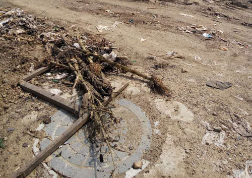 8月2日上午,在村民的陪同下來到匡村村南,在忻州烈士陵園背后一個叫周家(音)墳的地方,看到路口黑色的玉米桿躺放在井蓋上,生銹的用鋼管焊成的院門兩邊和門口,堆放著五顏六色的塑料袋以及廢塑料和破鐵桶等生活垃圾破爛,連院內(nèi)也同樣是垃圾。 一位村民指著西面被垃圾包圍的一個鐵皮焊接成的小門說:“這就是我們?nèi)迦顺运乃畯木锍槌?,通過管道送往距此地約300多米的蓄水池,然后在供給各家各戶,這是我們?nèi)逦ㄒ坏某运??!?/p>