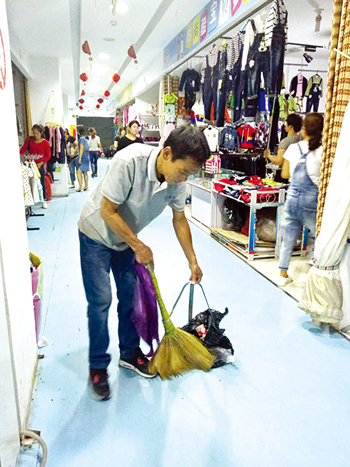 整個(gè)云河商場(chǎng)只有一層,共60多家商戶,衛(wèi)生清潔一天3次,工作量雖然不是很大,卻也不輕松。記者見(jiàn)到老馬時(shí),他正在做商場(chǎng)關(guān)門(mén)前的最后一次清掃。不時(shí)有商戶喊老馬過(guò)去收紙箱和塑料袋,老馬加快了手里的動(dòng)作?!吧虉?chǎng)是公共場(chǎng)所,管理也挺嚴(yán)格的,我得隨時(shí)注意看哪里有了垃圾,或是公共設(shè)施出了問(wèn)題,要不人來(lái)人往怕出事。干凈整潔的環(huán)境代表著商場(chǎng)的形象,也能讓顧客購(gòu)物時(shí)有個(gè)好心情,這也是我工作的價(jià)值吧?!崩像R坦言,有的人衛(wèi)生習(xí)慣特別不好。商場(chǎng)里童裝生意最為火爆,有個(gè)別帶孩子的家長(zhǎng)直接讓孩子隨地大小便,不僅弄臟了環(huán)境也作了不良示范。老馬希望通過(guò)創(chuàng)衛(wèi),大家愛(ài)護(hù)環(huán)境衛(wèi)生的意識(shí)得到提高,這樣他也可以輕松點(diǎn)了。(王菲)