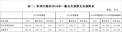 忻州日報社2016年度部門預(yù)算及“三公”經(jīng)費預(yù)算公開情況