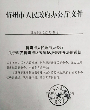 第一條 為加強(qiáng)餐廚垃圾管理,維護(hù)市區(qū)市容環(huán)境衛(wèi)生,促進(jìn)餐廚垃圾無害化處理和資源化利用,保障市民身體健康,根據(jù)《中華人民共和國固體廢物污染環(huán)境防治法》、國務(wù)院《城市市容和環(huán)境衛(wèi)生管理條例》、建設(shè)部《城市生活垃圾管理辦法》(建設(shè)部令2007年第157號)、商務(wù)部《餐飲業(yè)經(jīng)營管理辦法(試行)》(商務(wù)部令2014年第4號)、《忻州市人民政府辦公廳關(guān)于印發(fā)忻州市區(qū)垃圾管理辦法的通知》(忻政辦發(fā)〔2014〕1號)和《忻州市人民政府辦公廳關(guān)于印發(fā)忻州市區(qū)生活垃圾分類管理實施辦法的通知》(忻政辦發(fā)〔2014〕134號)等法規(guī)和規(guī)定,結(jié)合市區(qū)實際,制定本辦法。