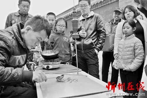 4月4日,在原平市天牙山風(fēng)景區(qū)一位農(nóng)民正在制作糖人。當(dāng)日是清明節(jié),不少游人紛紛走出家門踏青賞花,有許多人圍在農(nóng)民身邊要求買糖人,這位農(nóng)民制作糖人手法熟練,既豐富了景區(qū)市場(chǎng),又增加了個(gè)人收入。 褚震 攝