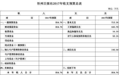忻州日報(bào)社2017年度部門預(yù)算及“三公”經(jīng)費(fèi)預(yù)算公開情況