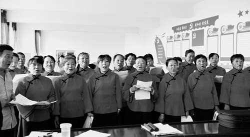 7月30日,河曲縣樓子營鎮(zhèn)柏鹿泉村文化活動室里20多名本村婦女正在排練大合唱。平日里,該村經(jīng)常利用空閑時間組織村民以傳統(tǒng)二人臺對唱、快板、集體大合唱等群眾喜聞樂見的表演形式活躍鄉(xiāng)村文化,滿足村民精神文化需求。 (鄔耿杰 攝)