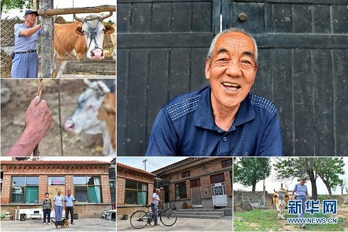 尚彩良,男,1949年出生,山西省長(zhǎng)治市潞城區(qū)比干嶺村人,家傳的養(yǎng)殖技術(shù)讓他從小不愁吃穿,但突如其來(lái)的患病導(dǎo)致他生活陷入困難。2015年開(kāi)始,他享受貧困戶(hù)養(yǎng)殖補(bǔ)貼、種植補(bǔ)貼和醫(yī)療補(bǔ)貼,2016年在當(dāng)?shù)卣膸椭伦∵M(jìn)了新房。 右上:尚彩良肖像;左上:尚彩良準(zhǔn)備去放牛;左中:尚彩良在放牛;左下:尚彩良(中)和家人在新院子里合影;下中:尚彩良推著自行車(chē)走進(jìn)院子;下右:尚彩良在去放牛的路上(拼版照片,6月12日攝)。 地處晉東南的山西省長(zhǎng)治市,位于由太行山、太岳山環(huán)繞而成的上黨盆地中。在群山中、崖壁上,許多村莊自然條件惡劣,基礎(chǔ)設(shè)施落后,脫貧致富是大山深處人們的迫切心愿。 近年來(lái),一場(chǎng)場(chǎng)脫貧攻堅(jiān)戰(zhàn),在一個(gè)個(gè)深山村打響。政府全力探索脫貧路徑的同時(shí),山區(qū)百姓因地制宜,靠自己的雙手和智慧走上致富路,交出了一份扎實(shí)的脫貧答卷。 記者在太行山、太岳山一路尋訪(fǎng),記錄下多位70歲老人的生活。這些共和國(guó)的同齡人,親歷了山鄉(xiāng)的巨變,見(jiàn)證著長(zhǎng)治山區(qū)脫貧攻堅(jiān)偉大工程的一步步推進(jìn)。 新華社記者 曹陽(yáng) 攝