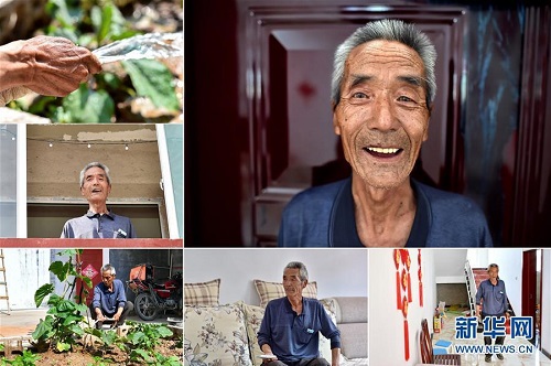 劉中秀,男,1949年出生,山西省長(zhǎng)治市潞城區(qū)西北村人,全家5口人靠種植玉米為生,收入微薄。2011年,劉中秀因一次意外而致殘,生活更加貧困。被列入建檔立卡貧困戶后,劉中秀在村干部的幫助下開起了農(nóng)家樂,他的子女參與了貧困技能培訓(xùn)并順利就業(yè)。 右上:劉中秀肖像;左上:劉中秀在給植物澆水;左中:劉中秀站在新房的二樓看向窗外;左下:劉中秀在院子里給植物澆水;下中:劉中秀在新房里看電視;下右:劉中秀在新房里(拼版照片,6月12日攝)。 地處晉東南的山西省長(zhǎng)治市,位于由太行山、太岳山環(huán)繞而成的上黨盆地中。在群山中、崖壁上,許多村莊自然條件惡劣,基礎(chǔ)設(shè)施落后,脫貧致富是大山深處人們的迫切心愿。 近年來,一場(chǎng)場(chǎng)脫貧攻堅(jiān)戰(zhàn),在一個(gè)個(gè)深山村打響。政府全力探索脫貧路徑的同時(shí),山區(qū)百姓因地制宜,靠自己的雙手和智慧走上致富路,交出了一份扎實(shí)的脫貧答卷。 記者在太行山、太岳山一路尋訪,記錄下多位70歲老人的生活。這些共和國(guó)的同齡人,親歷了山鄉(xiāng)的巨變,見證著長(zhǎng)治山區(qū)脫貧攻堅(jiān)偉大工程的一步步推進(jìn)。 新華社記者 曹陽(yáng) 攝
