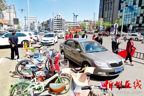 經過連續(xù)幾年大干城建年和如火如荼的創(chuàng)衛(wèi)建設,忻州市民欣喜地看到城區(qū)發(fā)生了巨大的變化,路寬了,樹綠了,現代化建筑鱗次櫛比。城市硬件設施的提升,更需要文明軟實力的提升,可是總有一些人,自身素質跟不上文明的腳步,譬如近日記者在街頭看到,有人將電動車停放在機動車之間,有人扎堆將自行車電動車無序停放在街道邊,還有的司機在禁停標志前赫然停放車輛,讓城市秩序頓顯零亂之感。圖一為城區(qū)七一路網通公司門前自行車輛亂停亂放;圖二為有人將電動車停放在機動車之間;圖三為一輛轎車在禁停標志前橫跨盲道停放。(魯明強)