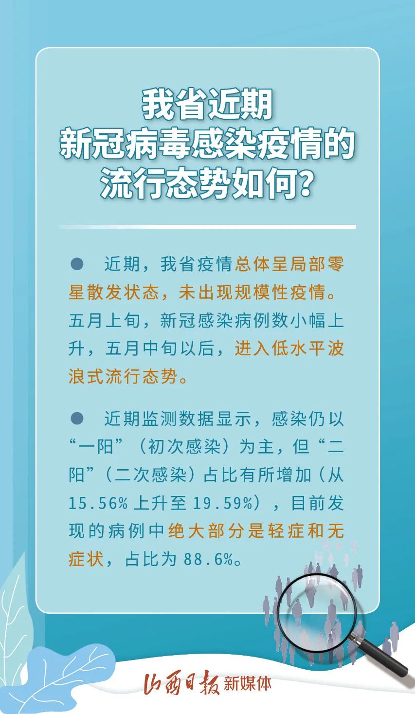 我省近期新冠病毒感染疫情的流行態(tài)勢(shì)如何?“二陽(yáng)”患者是否癥狀更重?如何預(yù)防新冠感染?......6月9日,山西省衛(wèi)健委針對(duì)當(dāng)前疫情防控中公眾關(guān)心的問(wèn)題,組織有關(guān)專(zhuān)家回答記者提問(wèn)。