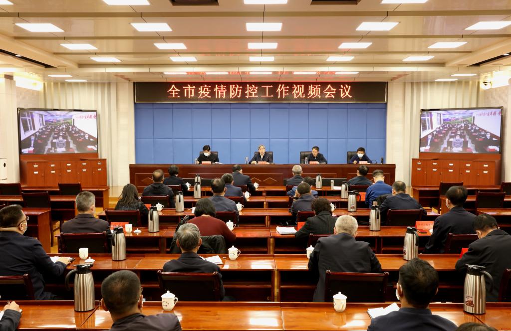 4月18日晚,全市疫情防控工作視頻會議召開,傳達學(xué)習(xí)貫徹全國、全省保障物流暢通促進產(chǎn)業(yè)鏈供應(yīng)鏈穩(wěn)定電視電話會議精神,省委、市委專題會議暨疫情防控領(lǐng)導(dǎo)小組會議精神,專題調(diào)度部署各地全員核酸檢測進展、能力建設(shè)等疫情防控和物流保通保暢、經(jīng)濟社會穩(wěn)定運轉(zhuǎn)重點工作。市委書記、市新冠肺炎疫情防控工作領(lǐng)導(dǎo)小組組長朱曉東出席會議并講話。市委副書記、政法委書記、領(lǐng)導(dǎo)小組第一副組長郭奔勝主持會議并提出工作要求。市委常委、副市長溫建軍,副市長崔崢嶺分別作具體安排。各縣(市、區(qū))設(shè)分會場。