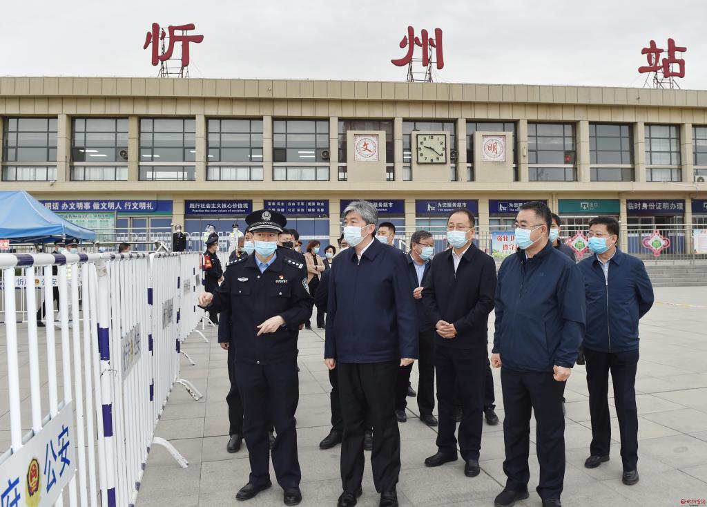 在忻州火車站調(diào)研來忻返忻人員“點(diǎn)對點(diǎn)”接返和隔離管控等工作落實(shí)情況。馮曉磊 攝