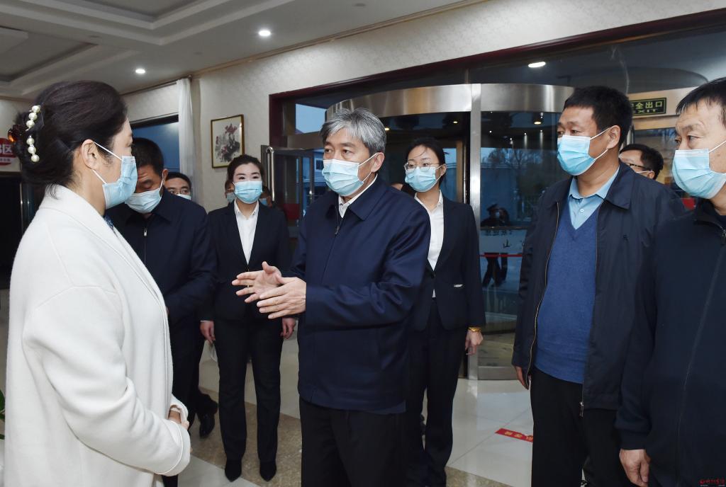 朱曉東一行先后來到忻州城區(qū)七一路和頓村、奇村等地酒店隔離點(diǎn),每到一處,朱曉東都通過實(shí)地察看、聽取匯報(bào)、交流詢問等方式,詳細(xì)了解隔離場(chǎng)所管理運(yùn)行、通道設(shè)置、工作人員配備、值班值守、環(huán)境消殺、物資儲(chǔ)備等情況,并就在督查中發(fā)現(xiàn)的問題現(xiàn)場(chǎng)提出整改意見。調(diào)研中,朱曉東還向奮戰(zhàn)在一線的醫(yī)護(hù)人員、后勤保障人員表示慰問,叮囑他們既要保障好隔離人員的正常生活,也要加強(qiáng)自我防護(hù),確保各項(xiàng)工作流程形成閉環(huán),堅(jiān)決杜絕出現(xiàn)交叉感染。