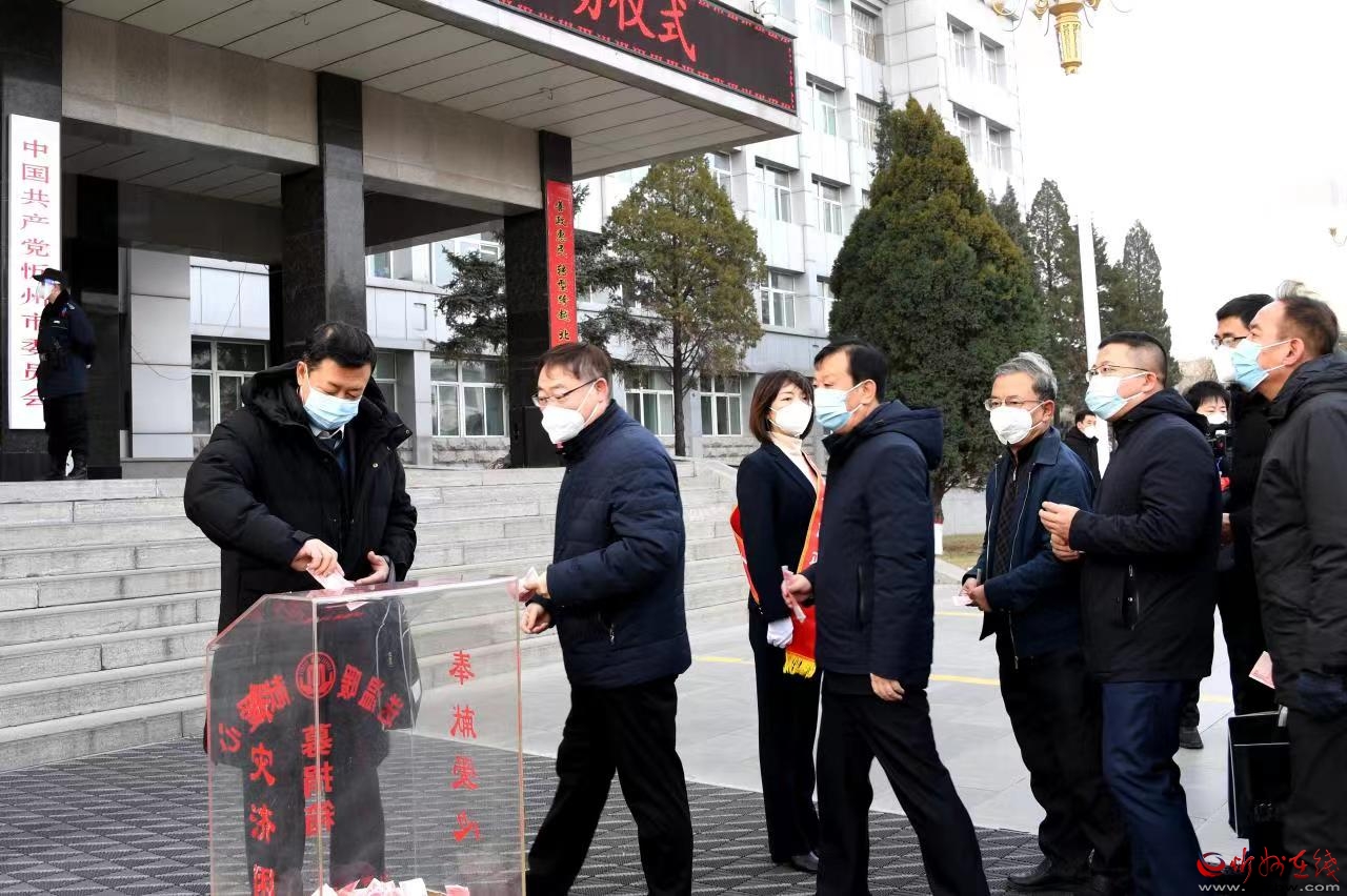 12月12日上午,我市舉行2022年“送溫暖、獻愛心”社會捐助活動啟動儀式,動員社會各界積極參與捐助,為困難群眾獻上一份愛心。朱曉東、李建國、王珍、范建民等在忻的市四套班子領導和市委、市人大常委會、市政府、市政協(xié)辦公室干部職工在現場帶頭捐款。