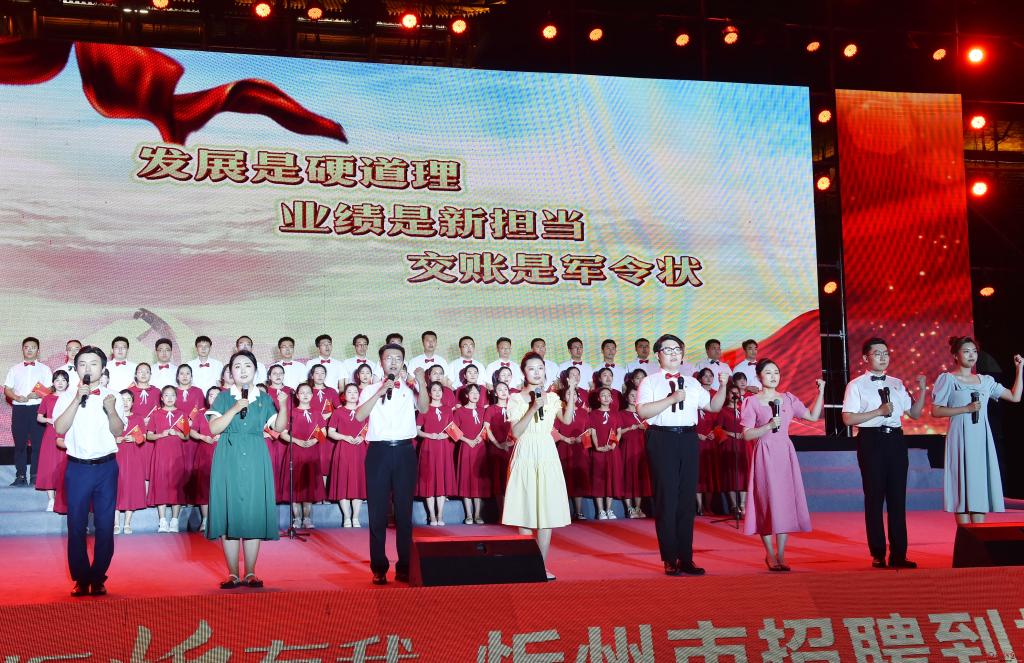 青春向黨,振“忻”有我。7月7日晚,忻州市招聘到村工作大學(xué)生風(fēng)采展示活動(dòng)在忻州古城北城門樓廣場精彩上演。市委書記朱曉東,市政協(xié)主席范建民,市委常委、秘書長溫建軍,市委常委、組織部長張敏等市領(lǐng)導(dǎo)與社會(huì)各界和全市到村工作大學(xué)生代表一同觀看。