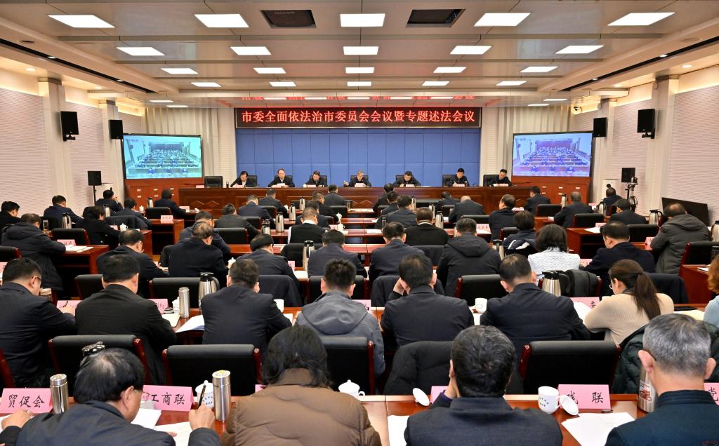 1月30日,市委全面依法治市委員會會議暨專題述法會議召開。會議深入學(xué)習(xí)貫徹習(xí)近平法治思想,認(rèn)真落實黨中央和省委部署要求,在全面總結(jié)工作、分析研判形勢、強化工作舉措的基礎(chǔ)上,認(rèn)真開展黨政主要負(fù)責(zé)人專題述法和“誰執(zhí)法誰普法”履職報告評議,進(jìn)一步統(tǒng)一思想、深化認(rèn)識,壓實責(zé)任、凝聚合力,全力推動法治忻州建設(shè)邁上新臺階。市委全面依法治市委員會主任、市委書記朱曉東出席并講話,市委全面依法治市委員會副主任、市委副書記、市長李建國主持會議。市委全面依法治市委員會副主任、市委常委、政法委書記、宣傳部部長王琳玉,市委常委、秘書長溫建軍,副市長、市公安局局長史洪波,市中級人民法院院長栗向東,市人民檢察院檢察長郭鴻以及市人大常委會秘書長李強、市政府秘書長張艮生、市政協(xié)秘書長王培雄出席會議。