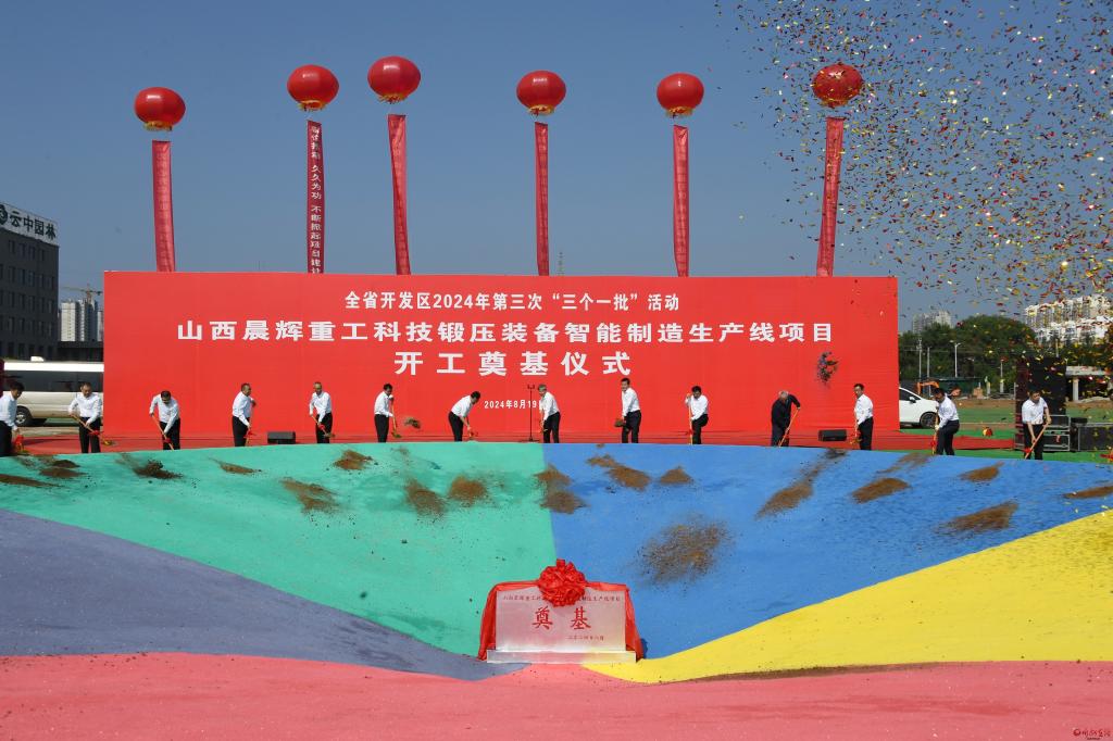 活動期間,與會人員共同為“開工一批”重點項目——山西晨輝重工科技鍛壓裝備智能制造生產(chǎn)線項目培土奠基,現(xiàn)場觀摩了“投產(chǎn)一批”重點項目——一道新能源(忻州)有限公司14GW光伏電池生產(chǎn)基地項目。(張曄)