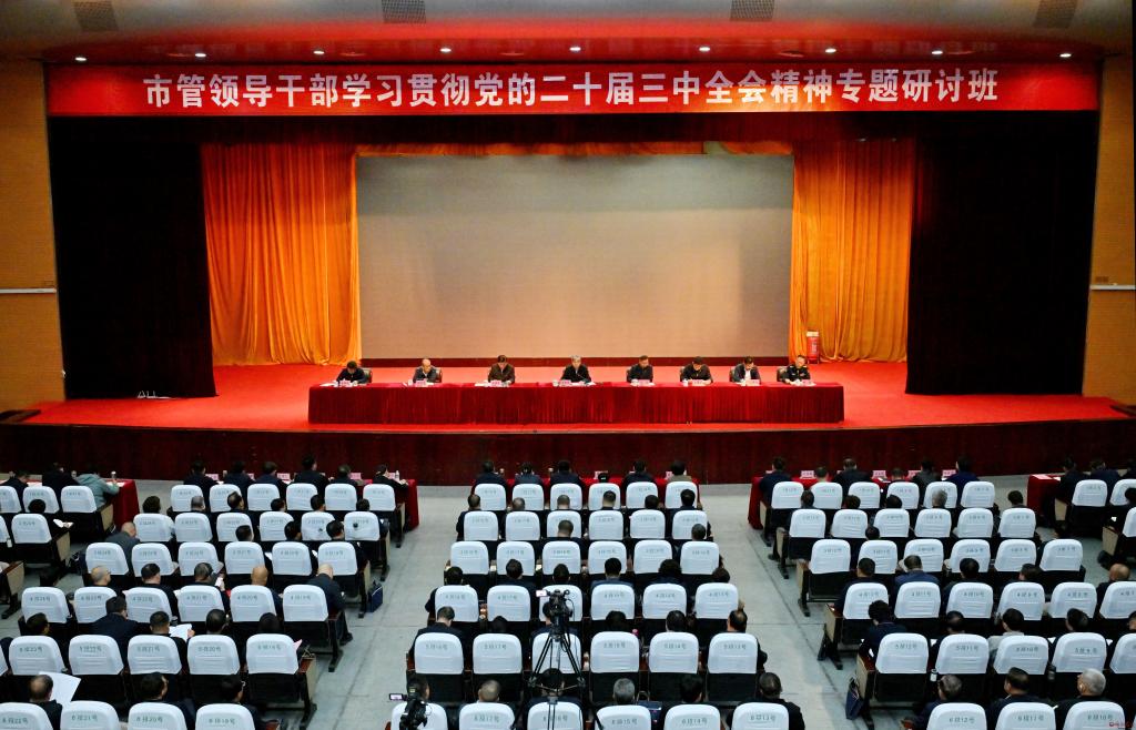 10月9日,市管領(lǐng)導(dǎo)干部學(xué)習(xí)貫徹黨的二十屆三中全會精神專題研討班開班。市委書記朱曉東出席開班式并作動員講話。他強調(diào),要深入貫徹落實黨的二十屆三中全會和省委十二屆八次全會、市委五屆七次全會精神,高舉改革開放旗幟,堅定扛牢使命任務(wù),牢固樹立“發(fā)展是硬道理、業(yè)績是新?lián)?、交賬是軍令狀”的工作理念,秉持“負責(zé)任、動腦筋、講良心”的工作要求,開拓創(chuàng)新、奮發(fā)有為,不斷開創(chuàng)我市進一步全面深化改革新局面,奮力譜寫中國式現(xiàn)代化忻州篇章。市人大常委會主任王珍出席開班式。市委常委、秘書長溫建軍主持開班式。市委常委,市人大常委會、市政府、市政協(xié)負責(zé)同志,市中級人民法院院長,忻州職業(yè)技術(shù)學(xué)院黨委書記,各縣(市、區(qū))委書記出席開班式。