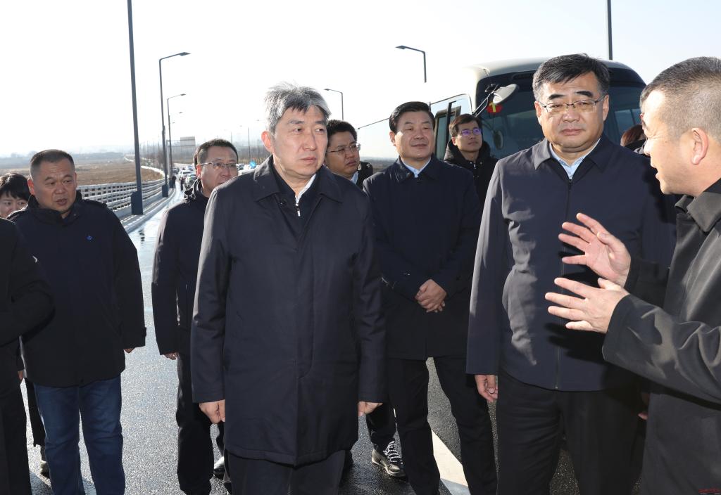 在云中河大橋調(diào)研忻奇大道項(xiàng)目建設(shè)情況。范濤 攝