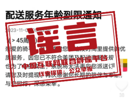 真相:近日,一張“配送服務(wù)年齡到限通知”的截圖在網(wǎng)絡(luò)流傳,稱“年齡超過(guò)45歲后,就不再符合某外賣平臺(tái)及配送服務(wù)商的服務(wù)規(guī)范,系統(tǒng)將不再派送訂單”。經(jīng)向該外賣平臺(tái)核實(shí),此信息為謠言。該平臺(tái)工作人員在接受記者采訪時(shí)稱,考慮到配送過(guò)程中相關(guān)安全因素,會(huì)對(duì)騎手的年齡限制在18周歲至57周歲之間,在此年齡范圍內(nèi),且具有完全民事行為能力和相應(yīng)的獨(dú)立勞動(dòng)能力,身體健康、持有有效健康證且無(wú)相關(guān)類型疾病,符合無(wú)違法犯罪記錄、熟練駕駛相關(guān)車輛等要求的人員均可注冊(cè)為網(wǎng)約配送員,網(wǎng)傳“配送員年齡上限為45歲”系虛假信息。(來(lái)源:北京網(wǎng)絡(luò)辟謠、上海網(wǎng)絡(luò)辟謠、湖北網(wǎng)絡(luò)辟謠)
