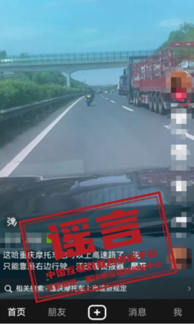 真相:近日,重慶市大足區(qū)網(wǎng)民楊某在互聯(lián)網(wǎng)平臺(tái)發(fā)布信息稱“重慶摩托車也可以上高速路了”,引發(fā)關(guān)注。經(jīng)交管部門核實(shí),根據(jù)《重慶市公路管理?xiàng)l例》第三十一條規(guī)定:在高速公路、高速公路用地范圍內(nèi),禁止非機(jī)動(dòng)車、摩托車、拖拉機(jī)、輪式專用機(jī)械車、鐵輪車、履帶車和可能損害路面的機(jī)具行駛。網(wǎng)傳信息系謠言。目前,大足警方已對(duì)造謠網(wǎng)民楊某依法予以查處。(來源:“重慶辟謠”微信公眾號(hào))