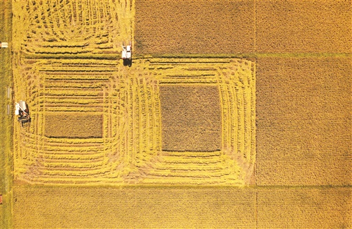 5月9日上午,湖南雜交水稻研究中心海南省三亞市海棠灣基地,收割機(jī)對水稻試驗示范田進(jìn)行收割。湖南日報·新湖南客戶端首席記者 郭立亮 攝