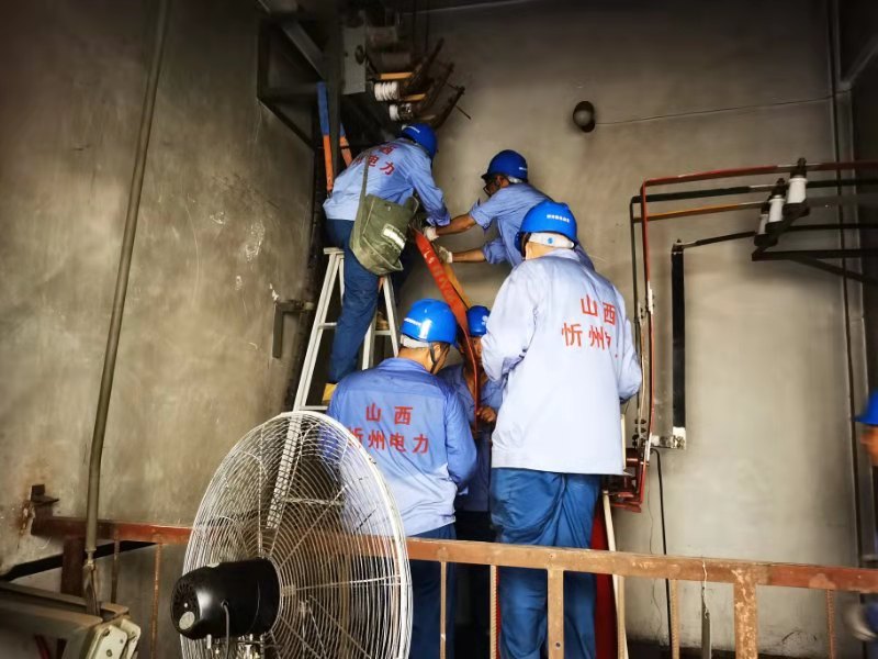 7月27日早8時,國網(wǎng)忻州供電公司保供電小分隊9人奔赴現(xiàn)場,進入小區(qū)配電室的那一瞬間,就被眼前的場景驚到了,配電室內(nèi)地面浸水導(dǎo)致主變地基下沉、變壓器基礎(chǔ)嚴(yán)重傾斜,與之相連的高壓側(cè)設(shè)備基本損壞,母排變形、融管炸裂、觸頭損壞,目測這里的工作任務(wù)量估計得干到晚上了。