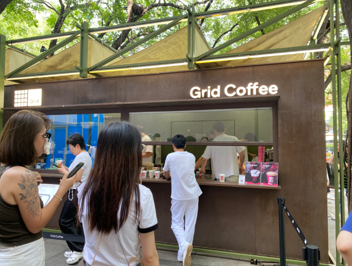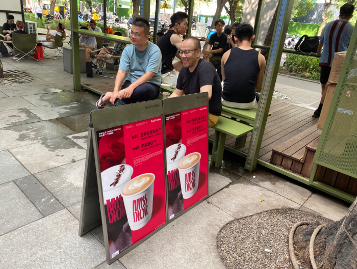 Grid Coffee與迪奧聯(lián)名咖啡吸引消費(fèi)者排隊(duì)購(gòu)買(mǎi)。