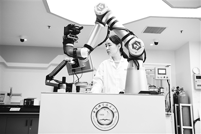 中國科學技術(shù)大學一名博士研究生在實驗室調(diào)試機器化學家系統(tǒng)“小來”。新華社記者 張端攝