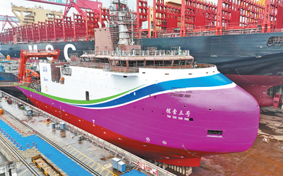 該船建造內(nèi)容包括船舶系統(tǒng)、載人深潛水面支持系統(tǒng)和綜合科考作業(yè)系統(tǒng),續(xù)航力1.5萬海里、載員80人,可為深遠海地質(zhì)、環(huán)境和生命科學相關前沿問題研究提供所需的樣品和環(huán)境數(shù)據(jù),支持深海核心技術(shù)裝備的海上試驗與應用。此次出塢后,將開展設備調(diào)試和系統(tǒng)聯(lián)調(diào)、船舶海試和科考設備海試等,預計于2025年完工交船、投入海上作業(yè)。