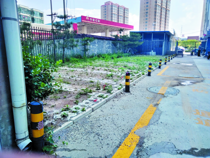 本報“百姓直通車”欄目記者于6月30日上午前往該小區(qū)進行了采訪。該小區(qū)東門設置于云中北路與雁門東大道路口的西北角,大門的行人出入口開了一家家具店,店門開在行人過道上,店門的右側(cè)設置了一截不銹鋼護欄,好像是在提請行人“不能直行應拐入行車道進入小區(qū)”。進入小區(qū)后,記者向小區(qū)居民了解到,該小區(qū)共有4棟樓,從南到北依序排列,位于南面的1號樓車庫東端有臨時搭建的彩鋼房,房門是用鋼筋焊接的簡易柵欄,面積大概有15平方米,里面空空如也,不知是所做何用,問及居民時也是閃爍其辭說,好像是存車的吧?隨后記者來到了4號樓車庫的東端,大概有8個露天車位被人設置地樁并鎖死,里面長滿了雜草。當有居民路過,記者問及何故,居民也是借故推脫走開。此處也有一臨時搭建的彩鋼房,里面堆滿了雜物。這些私搭亂建亂設地樁的現(xiàn)象,究竟是物業(yè)所為?還是個別住戶私搭亂建?帶著這些問題記者找到了小區(qū)保安室(門房),保安室內(nèi)有4人圍坐在一起正在專心致志打撲克,記者問及相關(guān)問題,他們以管事的不在為由推脫了事。