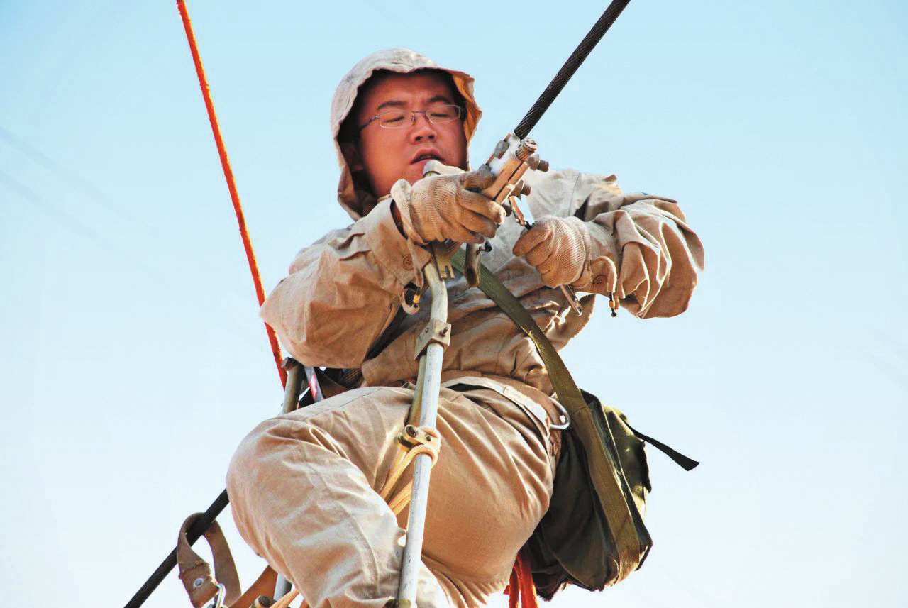2000年,張杰退伍后來(lái)到國(guó)網(wǎng)忻州供電公司,當(dāng)了一名輸電線路帶電檢修工。帶電作業(yè)難度大、風(fēng)險(xiǎn)高,對(duì)身體、技術(shù)和心理等方面要求很高。檢修工每次都要穿上厚厚的屏蔽服,背上幾公斤重的工具包,爬上軟梯到達(dá)7層樓高的地方進(jìn)行作業(yè)。剛參加工作時(shí),張杰自知經(jīng)驗(yàn)不足,只要有去檢修現(xiàn)場(chǎng)的機(jī)會(huì),他就爭(zhēng)著去、搶著干,憑著肯鉆研、不服輸?shù)木瘢瑥埥苋〉昧撕艽蟮倪M(jìn)步。