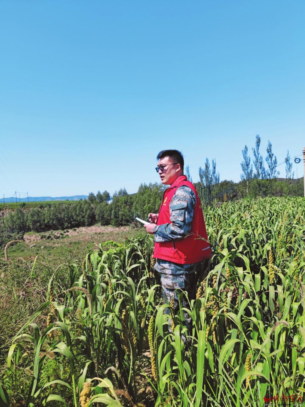 郭晉超在田間記錄莊稼長勢(shì)情況