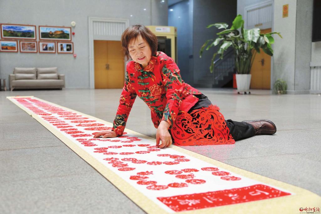 韋東梅說,春節(jié)前后,希望可以舉辦一次以《百蛇迎春》系列作品為主要內(nèi)容的剪紙作品展?!罢钩鲎约阂约巴降軅兊募艏堊髌?,讓回家過年的年輕人能夠感受到來自家鄉(xiāng)的一份年味兒。” (田沁梅)